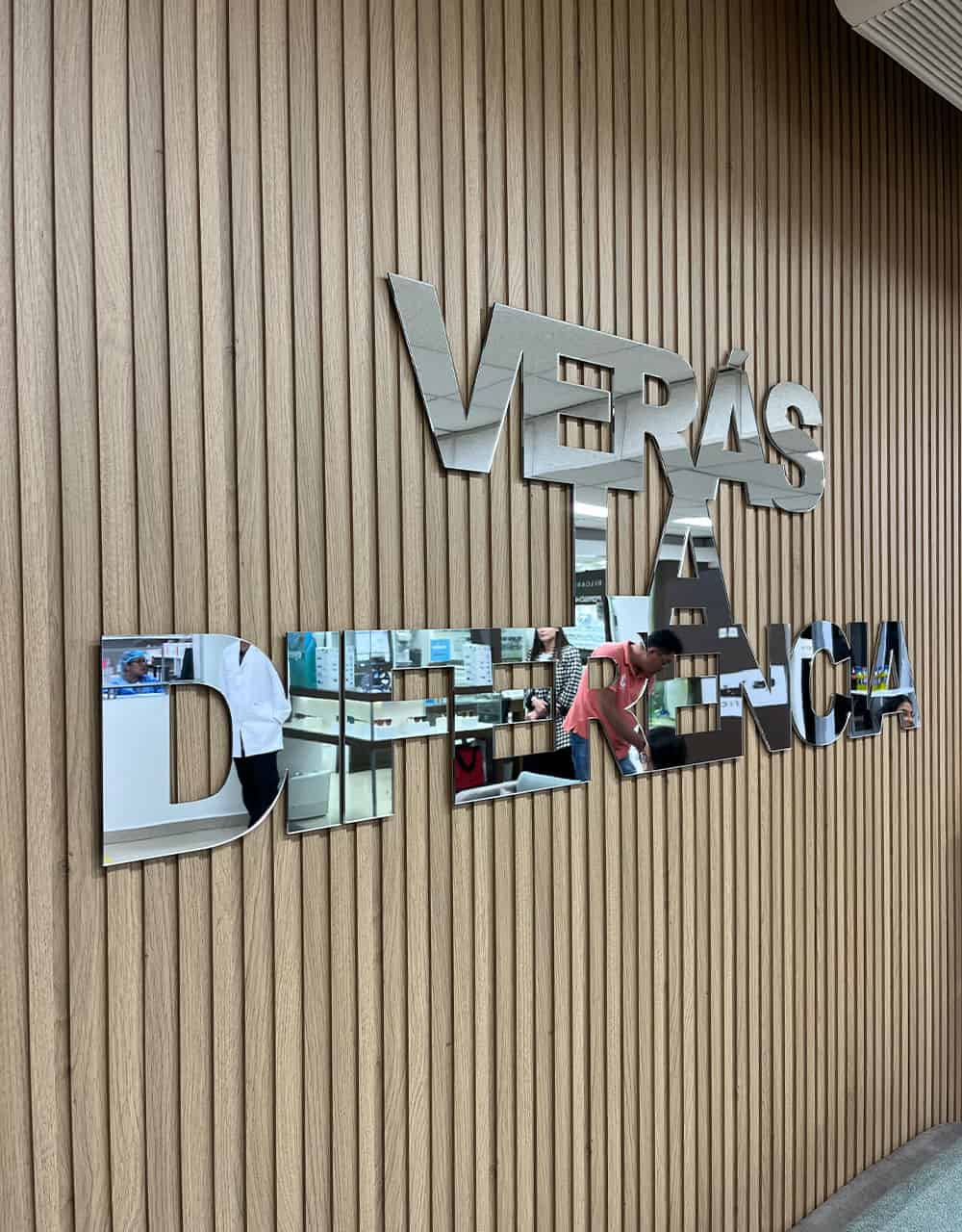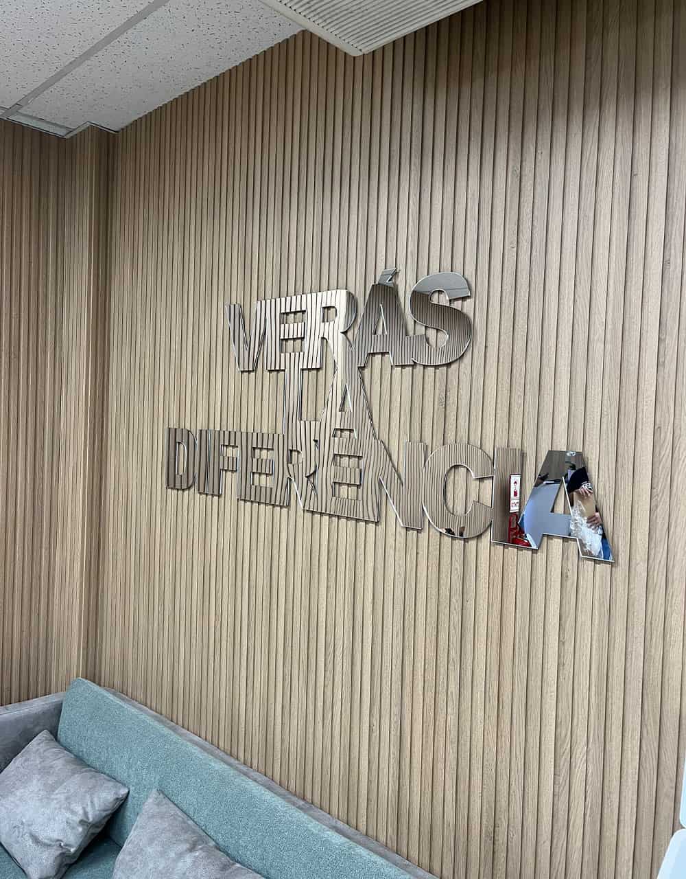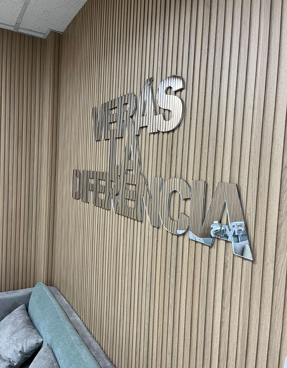 • Frase del cliente, en acrílico plateado espejo para recepción de clínica Oftálmica.